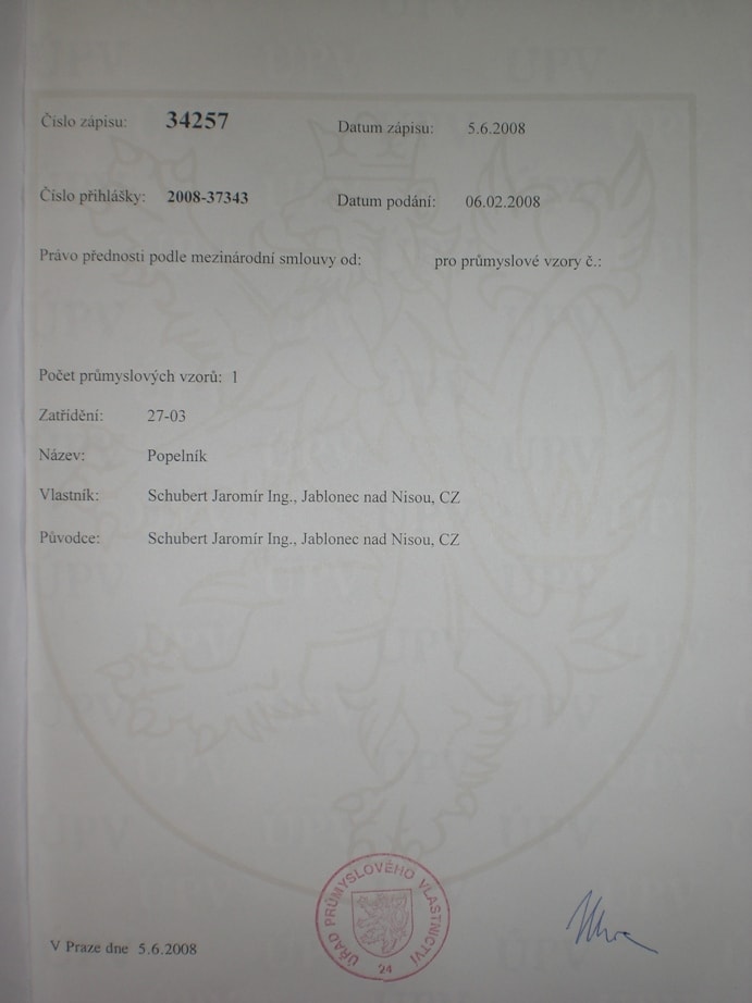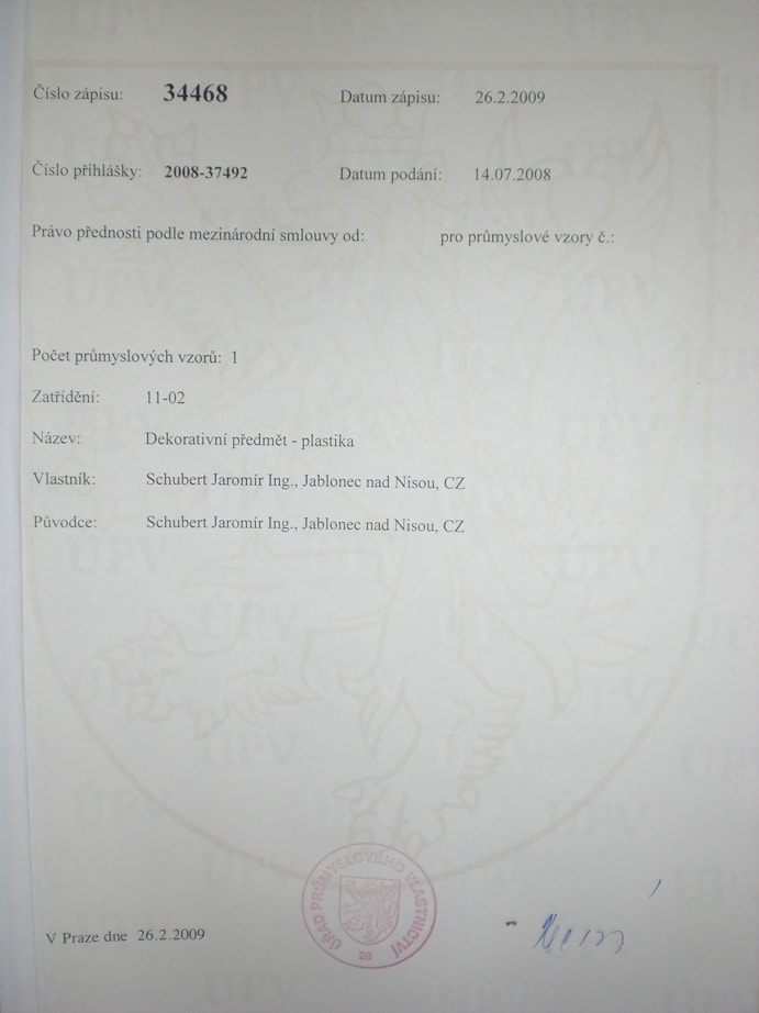 The company is authorized to use the country of origin labeling in languages mutations Czech Glass and Bohemia glass and is the owner of the historical trademarks Ingrid glass, Hoffmann glass and Schlevogt glass and also of registered protected industrial designs for a number of products that were inspired by historical drafts.
